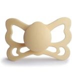 • THOUGHTFULLY DESIGNED: The FRIGG Butterfly silicone pacifiers are thoughtfully designed for your baby’s comfort and safety with an improved Silky Soft nipple and innovative click-lock system. FRIGG Butterfly is anatomical with a nipple that reflects the shape of the mouth. It is designed to minimize pressure on the palate and gums, which reduces the risk of crooked teeth and supports proper development of baby’s mouth and jaw.